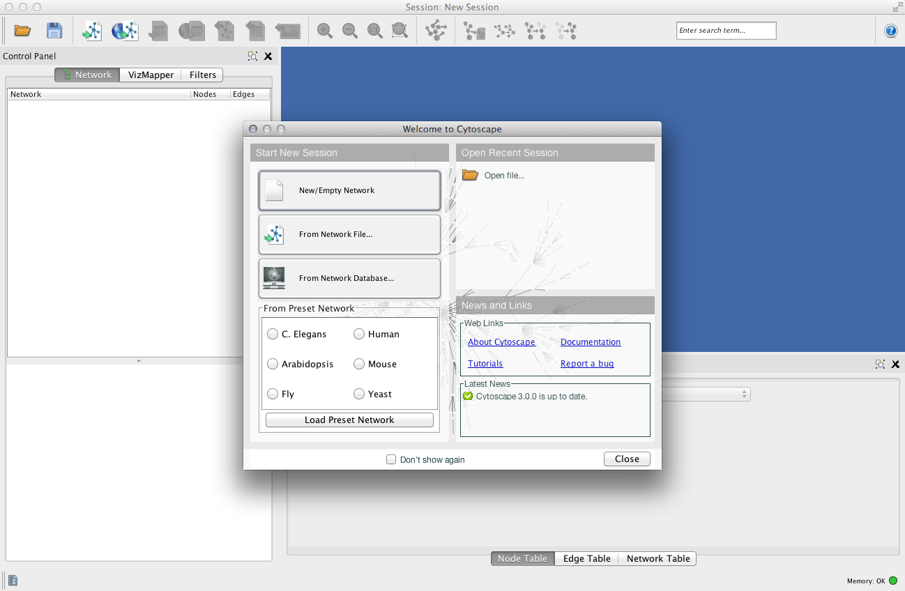 To refer to attachments on a page, use attachment:filename, as shown below in the list of files. Do NOT use the URL of the [get] link, since this is subject to change and can break easily.- [get | view] (2013-01-31 00:38:55, 151.6 KB) [[attachment:Cy3_cytoscape_startup_mac.png]]