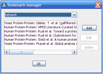 To refer to attachments on a page, use attachment:filename, as shown below in the list of files. Do NOT use the URL of the [get] link, since this is subject to change and can break easily.- [get | view] (2011-10-20 20:44:04, 10.8 KB) [[attachment:BookmarkManager.PNG]]